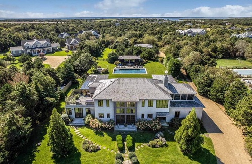 POINT B EXCLUSIVE - This stunning Katama compound features a Main House with three levels of uniquely designed green living space with luxurious amenities and stylish detailing at every turn, plus an equally sleek Guest House, Pool House, pool and hot tub.