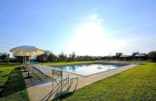 the swimming pool is 8 meters (26 feet) large by 15 meters (50 feet) long, 18 meters (5.9 feet) deep. The area is equipped with sun umbrellas, sun loungers and an external shower. By the pool you will also find a bathroom which is equipped with a washbasin and a toilet. From the swimming pool you will enjoy a pleasant view of the surrounding olive groves. You will share the pool with guests staying at 9 other apartments. The swimming pool is open from the beginning of May until the end of September.