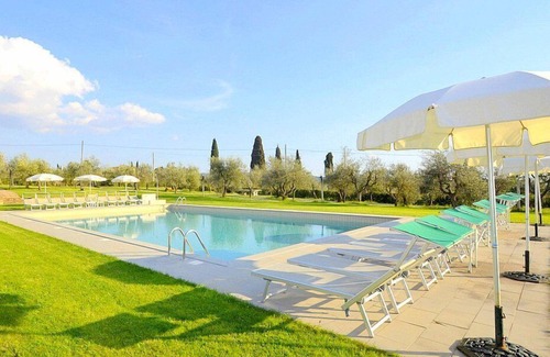 the swimming pool is 8 meters (26 feet) large by 15 meters (50 feet) long, 18 meters (5.9 feet) deep. The area is equipped with sun umbrellas, sun loungers and an external shower. By the pool you will also find a bathroom which is equipped with a washbasin and a toilet. From the swimming pool you will enjoy a pleasant view of the surrounding olive groves. You will share the pool with guests staying at 9 other apartments. The swimming pool is open from the beginning of May until the end of September.
