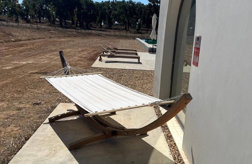 acesso direto ao alpendre pela sala; alpendre com vista para o montado onde podem ser efectuadas refeições e com zona de estar equipada com sofás de exterior; alpendre com ligação à piscina com tratamento ultravioleta e deck com espreguiçadeiras e guarda-sóis; barbecue equipado A casa tem uma empregada que poderá ser chamada mediante acordo prévio. Internet Wi-Fi e Smart TV.