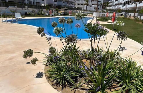 the apartment has 3 bedrooms and 2 bathrooms The accommodation offers a lawned communal garden with trees and a view of the pool, the garden, the street and other buildings. The vicinity of the beach, places to shop, sports activities, places to go out, sights and culture makes this a fine apartment to spend your holidays in Spain with family or friends.