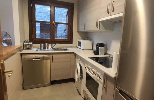 Mountain chalet with garden in the center of the town of Villanua, just 15 minutes by car from the city of Jaca and the ski slopes of Astun and Candanchu. Distributed on two floors, with 3 bedrooms and 3 full bathrooms, 1 of them on the ground floor, a complete American kitchen with all the necessary utensils for a perfect stay, a living room with access to the garden where you can enjoy views of the mountain. wonderful.