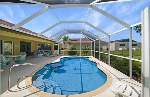 enjoy relaxing and sunbathing next to your 24 x 12 foot sparkling private heated pool while you enjoy the beauty of rotonda's waterways Also located on the lanai are a BBQ grill and a dining set with seating for 4, there is NO TV. A great area to enjoy peace and privacy after spending the day at the beach, boating, or a nearby golf course.