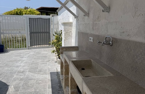 Freshly renovated apartment with independent entrance a stone's throw from the sea; minimalist style furnishings where modernity and tradition blend perfectly to give guests an authentic experience without sacrificing comfort. Built-in bathroom with large walk-in shower, large double bedroom with comfortable wardrobe and single bed/sofa. Living room with compact and completely retractable kitchenette, French sofa bed and dining area. A large outdoor space with outdoor kitchen and large outdoor shower to fully experience the summer. The icing on the cake is access to the panoramic terrace with sea view, solarium equipped with tables, chairs and deckchairs and equipped with a shower, where you can take refuge to sunbathe or organize a dinner at sunset..
