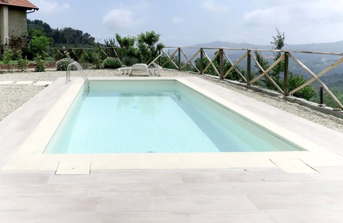 Small, cosy, rustic single-family house "Casa U Baregu". 5 km from the centre of Diano Marina, 11 km from the centre of Imperia, 22 km from the centre of Alassio, in a secluded, elevated position, 5 km from the sea, in the countryside. Private: property 20 ha, terraced garden with wildlife garden, orchard, swimming pool (6 x 3 m, depth 140 cm, seasonal availability: 01.Apr. - 31.Oct.). Pergola, terrace, garden furniture, barbecue, pool maintenance by the owner/gardener. 300 m long bumpy motor access. Stepped path to the house. Parking (for 2 cars) on the premises. Shop 2 km, supermarket 6 km, bus stop 10.9 km, sandy beach "Diano Marina" 5 km. Local sale of farm products. Please note: the owner lives on the same property.