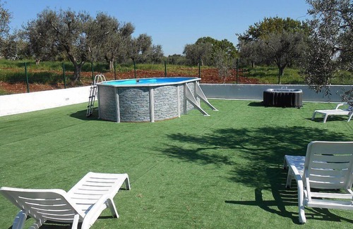 the above-ground swimming pool is 3 meters (10 feet) large by 5 meters (16 feet) long The swimming pool area is equipped with sun loungers. From the swimming pool you will enjoy a broad view of the surrounding countryside. You will share the pool with the other guests staying at the complex. It is open from mid-April until the beginning of October.