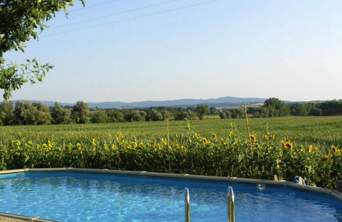 A lovely, well furnished house (sleeps 13) consisting of two apartments connected by external staircase, surrounded by fields of sunflowers in a quiet, peaceful location between Buonconvento and Monteroni d’Arbia, a few kilometers from Siena.