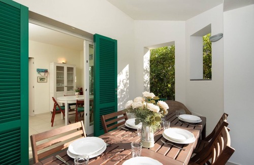 casina simonetta is located in vittoria apuana (forte dei marmi, versilia coast), just 700 m from the sea, in a very quiet condominium context, surrounded by greenery The villa boasts in fact a private fenced garden (about 200 sqm) with lawn and covered patio, equipped with a dining table for 6 people and wicker armchairs.