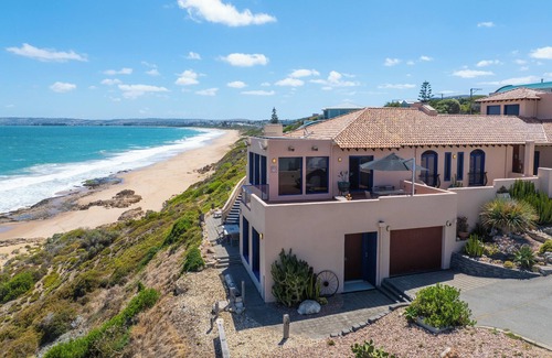Casita Alegre is a luxurious beach escape that seamlessly blends tasteful Mexican-Mediterranean design and architecture, offering breathtaking views of Knights and Boomer Beach in the popular seaside town of Port Elliot. Be mesmerised by the waves crashing over granite rocks, seal, dolphins and whales (June-Sept) along with the ever present surfers for your entertainment and delight. Commanding an unspoilt beach position, the home's grandeur is highlighted by the tastefully designed and outfitted open plan living, kitchen and dining area. All areas are flooded with natural light thanks to floor-to-ceiling walls of glass, seamlessly allowing for the very best of indoor/outdoor entertaining whilst overlooking breathtaking coastal vistas from all areas of the sparkling foreshore, glistening sandy dunes and striking crimson sunsets from the property's elevated vantage point. This Casita comprises 3 Bedrooms (2 each with a Queen-sized bed, one with 2 single beds), 2 bathrooms (one ensuite) and parking for 2 vehicles. A further 2 beds (single bunkbeds in a separate area to suit 2 children) are available subject to prior arrangement. This exclusive residence also offers a 'Honeymoon Suite', "Waves", sleeping a further 2 guests (available subject to prior arrangement) with private shower and toilet. Guests have access only to the downstairs Casita, along with the upstairs Margherita bar area. (Upstairs Casa is not included in this accommodation).This residence is also conveniently located to allow for day trip destinations such as Kangaroo Island. (1 hour to the ferry) Approx. 1-hour drive from Adelaide, and approx. 30 minutes from the acclaimed McLaren Vale wine region, this superb residence is only metres from one of the South Coast's most desirable beaches, and famous Bakery, and within walking distance of popular cafes, antique shops, boutiques and award winning restaurants. Guests have access only to the downstairs Casita, along with the upstairs Margherita bar area. (Upstairs Casa is not included in this accommodation). This exclusive residence also offers the 'Honeymoon Suite' sleeping a further 2 guests downstairs (subject to prior arrangement only) with private shower and toilet. Some of the additional areas in the upstairs Casa (not included in the standard booking of Casita Alegre) are available for hire for commercial purposes (e.g. model or product photoshoots) at an additional cost. If you would like to bring along any pets, then please make a request to the host, stating the number of pets that will be staying, as well as the breed and size..