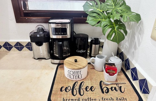 Experience the perfect blend of barefoot luxury and natural beauty at Casona Palms, a beachfront villa set on one of the last undeveloped stretches of the Mexican Caribbean near Mahahual (Costa Maya). With 3 beautifully appointed bedrooms, 3.5 baths and room for up to 8-10 guests, this serene hideaway offers privacy, comfort, and access to some of the region's most spectacular natural wonders. Crafted with natural materials and a commitment to comfort, Casona Palms features custom concrete architecture, hand picked decor, and luxury textiles throughout. Every space has been created to offer a comfortable coastal experience. Open concept great room with ocean views and hand carved furniture with 3 double doors to the outdoor terrace and direct access to 185 feet of private beach. The fully equipped kitchen provides cookware, Ninja blender, juicer, microwave, coffee maker and grinder, full size refrigerator and toaster plus all new tableware, cutlery and handblown Mexican glassware. The dining area seats 8 plus island seating for 6 - perfect for group meals. Wake up to the sound of the ocean and palm trees with sweeping views of the Caribbean from the private bedroom suites which include the Main Villa: second floor Master Suite with king bed, ensuite bath with double vanity and large walk-in shower, private oceanfront terrace with daybed and seating, gel memory foam topper, 650 thread count linens and down pillows and comforter, sleeps 2. Main Villa: second floor Double Guest Suite with two full beds, ensuite bath with double vanity and large walk-in shower, private ocean terrace with 2 sun loungers, 500 thread count linens, down/down alternative pillows and down comforter plus couch that converts to single bed, sleeps 4-5. Detached Casita: private main floor king suite with ocean view patio and seating area, ensuite bath with double vanity and large walk-in shower, gel memory foam topper, 650 thread count linens, down pillows and comforter, sleeps 2. Enjoy outdoor dining on the expansive oceanfront terrace with handcrafted wood dining table and chairs to seat 8 plus wood loungers. Beachfront grill and outdoor shower with 4 barstools for lounging while you grill - caretaker will light the grill at your request and can help source fresh fish and lobster in season. Shaded king beach bed, perfect for ultimate relaxation plus hammocks and loungers for beach lounging. Activities include beach volleyball - set up on request, 2 kayaks and 2 paddleboards for exploring the calms waters, swim spots and snorkeling just steps away (walk north to find deep sandy bottomed swimming spots) plus fishing and snorkeling at the reef which is approximately 500 yards off our beach. Don’t miss the amazing stargazing at night and breathtaking sunrises. Our villa is seamless off-grid living and is designed to operate sustainably without sacrificing comfort. The villa has a solar powered energy system with backup generator, filtered rainwater system with 10,000 gallon cistern (plus bottled drinking water provided), Wi-Fi via Starlink for reliable internet and Wi-Fi calling. Please note there is no A/C as the home was custom built for natural ventilation, with breezy crosswinds and fans in every room. No television so bring a laptop for streaming or enjoy unplugged evenings by the sea. Your stay is supported by our discreet, full time caretaker, who lives on-site in a private residence with his wife. He provides daily beach raking and clean-up (note that during sargassum season, it can be difficult to clear the beach completely depending on currents and wind), daily trash removal, fresh towel/linen service upon request and grill prep and sourcing local seafood (charcoal briquettes provided). Optional laundry service is available on Saturday and must be arranged with caretaker for an extra fee. Optional meal services available for evening dinners and on weekends for an extra fee. Explore the nearby activities in Mahahual which is just 35 minutes away. The vibrant beach town of Mahahual offers a mix of local charm and tourist amenities. Walk the Malecon, a beachfront promenade with casual restaurants, beach bars and markets. Take a dive or snorkeling trip to the Mesoamerican Barrier Reef, the second largest reef in the world. Book a fishing charter or paddle board lesson. Massages are available on the beach daily at many locations on the Malecon. Visit nearby Bacalar to see Laguna Bacalar, the lagoon of seven colors (saltwater lake ranging in color from light turquoise to the deepest blue). Spend a day exploring the nearby Mayan ruins. Our guest book will provide more information on dining, shopping and tours. Special note: This villa has been on Vrbo in the past by the previous owner with 10/10 reviews. We are the new owners and have been working hard this summer on updates and improvements to make your stay even better. Mexico is a special place to us and our goal is to provide you with a lovely beachfront stay with great communication and service! Car rental is recommended. We are a 2.5 hour drive from the new Tulum International Airport or 4 hours from Cancun International airport. Maya Tren (train), ADO bus and private transfers are available. Mahahual has taxi service for local transportation..