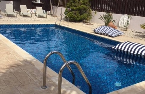 A stunning villa on the seaside just 50 meters from a private beach. It is located in a serene area of Ayia Thekla about 2 kilometers from Ayia Napa and Ayia Napa Waterpark, the largest on the island. It has a great private swimming pool and barbeque area , splendid gardens and the most wonderful sunsets to enjoy from your bedroom's veranda. The villa is fully equipped with all facilities. You can relax at the villa, take long walks by the seaside or visit the busy Ayia Napa or Protaras Touristic Villages. You are only a breath away from the most beautiful beaches of the island, Makronissos, Nissi beach, Landa Beach, Nissaki Beach. There are very nice fish restaurants around the area and a local supermarket..