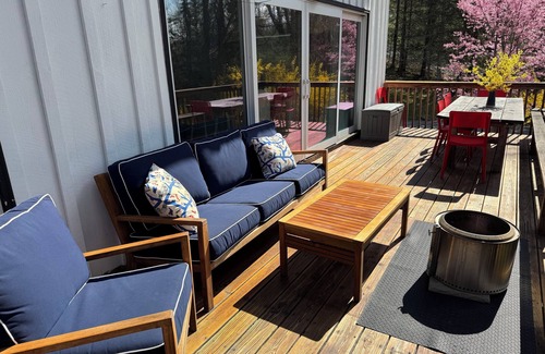 Enjoy our peaceful, updated Shokan home in the Catskills. This delightful house features 1 king bed and 2 queen beds, 3 bathrooms, a library/den ideal for remote work, and a stunning great room with soaring ceilings and natural light, perfect for a tranquil getaway. Relax on the expansive deck overlooking a private creek. Minutes to Ashokan Rail Trail; short drive to Woodstock, Kingston, and Phoenicia. First-time rental; seeking respectful guests. No pets or large parties, please. We're happy to assist with any questions while you stay at our house..