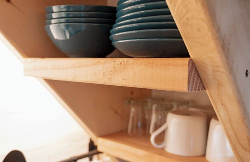 built with reclaimed materials and designed to feel both modern and warm, the cabin includes two loft sleeping spaces, a compact kitchenette, and a simple, clean interior that blends beautifully with the natural surroundings Large windows bring in the trees and creek, and the outdoor shower—tucked under the canopy—is a guest favourite, rain or shine.