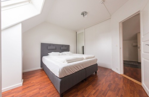 this is a bright penthouse apartment in an art nouvea architecture We especially like the good and high ceiling height of the apartment, it makes it so spacious. We have recently redesigned it with a lot of new furnitures, and we think you will love it. The apt. contains one 2 bedrooms; The main bedroom is big and has a queen-size bed, the second is quite narrow and has a single bed. The fourth sleeping space is on the couch in the living room. This is a very central location, so you can experience some noise from traffic.