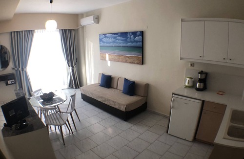 I offer a fully independent apartment located at the centre of Platanes, with a view at the swimming pool area and just 200m from the beach.