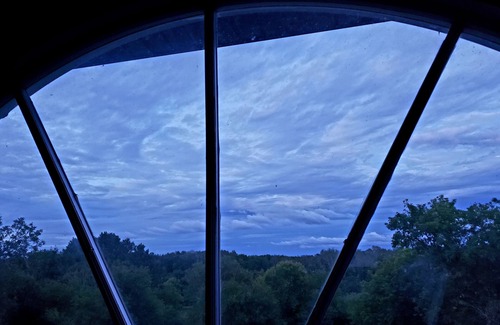 a much more modern addition, the second and third floor apartment located to the northeast of the home, has hand painted countertops displaying a birch forest transitioning through the seasons and a beautiful vintage window overlooking forest and prairie, with gorgeous views of the sunrise and stars There is also an east-facing balcony located off the common area with seating for two.