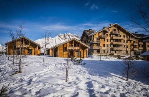 Le Hameau du Puy, Superdévoluy, Alps, France comprises of a set of semi individual split-level chalets (all in the same style) and apartments in collective chalets, they offer a welcome reception, a lounge. This 3-star luxury residence offers the best facilities, architecture, layout, design and location (close to major amenities and ski lifts) in the resort of Superdevoluy, Alps, France. At your disposal with free access: a relaxation area with indoor heated swimming pool and sauna. Surface area : about 42 m². Living room with bed-settee. Bedroom with double bed. Bedroom with 2 single beds. Kitchenette with coffee machine, toaster, dishwasher, microwave, vitroceramics cooking rings, fridge. Separated WC. Bathroom with bath-tub. Terrace..