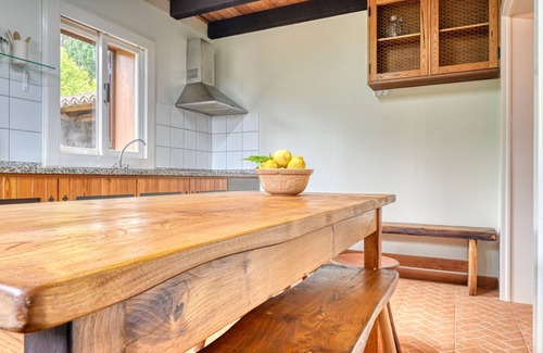 Chalet da Nogueira is a small mountain house recently renovated, which is recommended for hikers, practitioners of mountain activities and those who want to be away from urban centres.The house has an area of 40 m2 on two floors. On the upper floor, there is a bedroom with a double bed (160x200 cm) and a common area with two single beds (90x200 cm), which can accommodate up to 4 people. On the ground floor, there is a small living room, kitchen with a dining table and a bathroom.Outside, there is a porch, a backyard with a barbecue, a parking area, an area for washing bicycles and hiking boots and an agricultural land with fruit trees.The house is at an altitude of 780 m and can get cold on winter nights. Therefore, it has a heat pump to heat the house and extra blankets for the coldest nights. In summer the house can be cooled with air conditioning.The house is equipped with a fridge, washing machine, dryer, stove, oven, microwave, coffee machine and other utensils, as well as bed linen, towels, Wi-Fi (with 4G router), TV with international channels and other amenities to provide a pleasant and relaxed stay.LOCATIONThe house is in a small remote village surrounded by forest.There are no restaurants or services in the village. At 2.8 km there is the Bar-Restaurant O Pinhal. There are small grocery stores less than 4 km away and supermarkets 5 and 9 km away.Access from the main road to the house is via 1.2 km of unpaved road, which requires a vehicle with higher ground clearance and the driving speed must be reduced. In periods of rain, a vehicle with 4x4 traction is recommended.A few kilometres away, there are impressive cliffs, mountains, and Laurel Forest for nature lovers.For hikers and mountain bikers, there are forest paths nearby, as well as recommended walking routes and mountain bike trails a few kilometres away, namely in Paul da Serra.REMARKSA car is recommended to this location and free parking is available in the property or on the street.Cleaning is done before guests check in and then there is a weekly maintenance cleaning, which includes the change of bed linen and towels.As it is a rural area, there is potential for noise caused by dogs and other domestic animals in neighbouring properties. There are also insects in the surroundings that can be attracted by food scraps.The increase in the number of guests implies a price increase of up to 10% per person.CONDITIONS1. Parties or behaviour that disturb the peace and well-being of neighbours are not allowed, especially between 10 pm and 8 am when neighbourhood noise is prohibited.2. An online check-in form will be sent to collect essential identification data for check-in, arrival time and means of transport, which must be submitted by guests at least two days before arrival.3. Self-check-in with flexible arrival time is available via a key lockbox whose code is created and sent on the day of arrival. For face-to-face check-in, it is necessary to schedule the time and the waiting time is 60 minutes, after which a new time can be scheduled according to our availability.4. Guests may be required to present identification upon arrival and provide missing identification details to comply with legal requirements.5. Any malfunctions, incidents or faults in the initial cleaning must be reported as soon as they are detected so that they can be checked and addressed in a timely manner during the stay. Issues reported late for the sole purpose of obtaining a refund will not be considered.6. Guests must inform about allergies, conditions or special needs before or immediately after booking in order to verify compliance and appropriate measures to be taken..