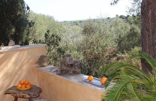Detached chalet with unobstructed views of the sea and hills on the east coast of Mallorca, 700m² with garden, Maccia, large south-facing terrace for breakfast, lunch, barbecue in the evening, exquisite patio and garden furniture with attractive accessories, short walk to three beautiful sandy coves in approx. 1-2 km distance, child-friendly: all utensils from the beach towel to umbrellas, games and toys for stand and home in the house available, fashionable duvet covers, hand and bath towels are self-evident, hygienic mattresses from the professional hotel sector ensure allergy-free and mosquito nets for a restful sleep.