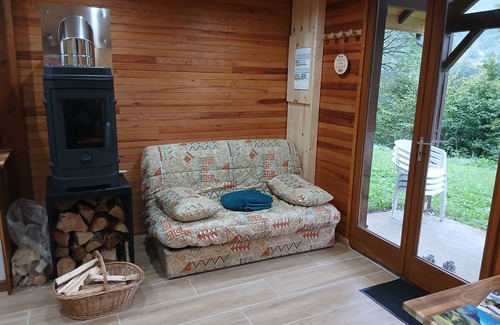 relax in the garden (enjoy the outdoor furniture!) of this 474-sq-ft chalet, which also offers a bbq grill As for the great indoors, you can come inside and enjoy the WiFi, TV, and DVD player.