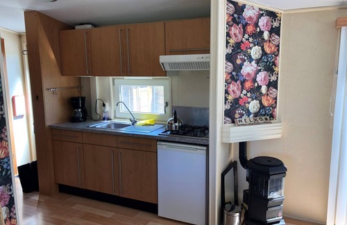 tucked within the peaceful holiday park of wiringherlant, this neatly furnished, detached chalet offers a relaxing escape with all the comforts of home Step into the warm and inviting living room, where a gas stove sets the mood for cozy evenings. The open-plan kitchen is equipped with all essentials to prepare your favorite meals, and the layout includes two bedrooms—one with a comfy double bed and one with a bunk bed that's perfect for kids. A clean, modern bathroom with shower and toilet completes the indoor space.