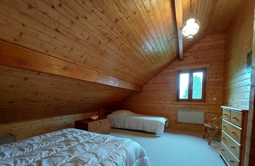 BEAU CHALET EXPOSÉ SUD ET OUEST D'ENVIRON 80 m² AVEC JARDIN ET ABRI POUR 1 VEHICULE ; SITUÉ A 750 M DE LA PISCINE ET DU FOYER DE SKI DE FOND, 1 KM DU CENTRE DU VILLAGE ET 2 KMS DES PISTES DE SKI ALPIN.