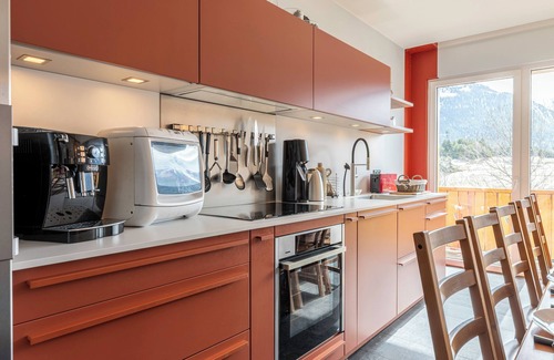 In Val-Cenis, the chalet Près du Mélèze-Val Cenis-Sardières with step-free access and interior offers an excellent view of the Alps. The 200 m² property consists of a living room, a kitchen, 7 bedrooms and 4 bathrooms as well as 2 additional toilets and can therefore accommodate 16 people. Additional amenities include high-speed Wi-Fi (suitable for video calls) with a dedicated workspace for home office, a TV, a washing machine as well as children's books and toys. On top of that, a table tennis table is also provided for your enjoyment. A baby cot and a high chair are also available. This accommodation does not offer: air conditioning. The building in which the accommodation is located has an elevator. This property features a private outdoor area with a balcony and barbecue facilities.