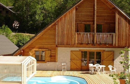 there are a number of other amenities you're sure to enjoy when you stay at chalet la lauze Most notable among these is the shared outdoor pool, which is both heated and covered.