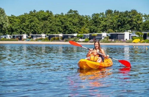 The Modus 4+2 really gives a feeling of comfort and luxury during your holiday. This ground floor chalet is detached and suitable for up to 6 people. The living room has a stylish interior with a sitting area and television, a dining area and a modern kitchen with a fridge-freezer, microwave and a Senseo machine. In total there are 2 separate bedrooms in the chalet, 1 with a double bed and 1 with 2 single beds. In addition, there is a double bedstead. The bathroom has a spacious shower cabin and a washbasin. The toilet is in a separate room. Through folding doors in the living room you can access the terrace with garden furniture. You can park 1 car at this house and you can connect to the Wi-Fi for free..