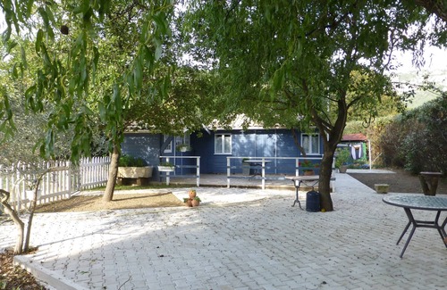 all in a small private garden, fenced and shaded, with also, table and chairs, where you can, if you wish to have lunch in the shade of oak trees or relax on the relaxation