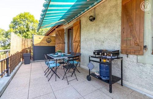 Apartment on the 1st floor of the owner's house, on the Chevignieux wine estate. Access via a separate external staircase, large private terrace. Living room, kitchen, 2 bedrooms (2 single beds 90x190 cm / 1 double bed 160x200 cm), bathroom (shower), separate toilet. Ski and bike storage. Private parking along the property. Ping-pong table available. Walks possible in the vineyards around the cottage. Welcome to the heart of a winery in the Savoyard foothills. This fully independent accommodation overlooks the vineyards, offering unobstructed views of Lake Bourget. Comfortably furnished, it offers two bedrooms and a spacious terrace for relaxing, as well as an outdoor relaxation area with a ping-pong table: a highly functional base for a stay in Chautagne..