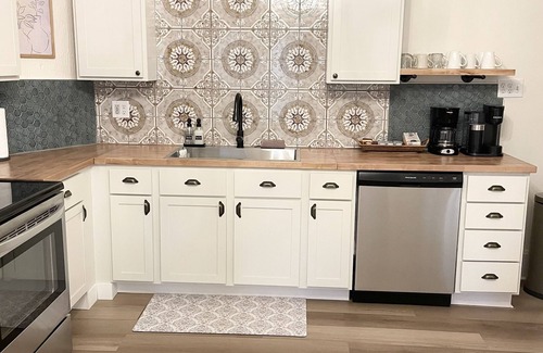 kitchen: fully stocked It has a selection of coffee and tea provided. There is a Keurig coffee maker with a milk frother. Plus a 12 cup coffee pot. The kitchen also has a crockpot, blender, hand mixer and toaster.