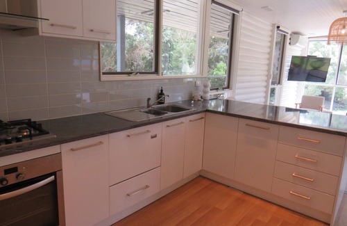 this cosy 3 bedroom home comfortably accommodates 8 guests with open plan living and dining space and a fully equipped kitchen with all the mod cons so is suitable for a large family or 2 small families The expansive outdoor area is sure to please with kids play equipment, designated fire pit (*conditions apply) and ample parking. Sit back on the deck while the BBQ sizzles away, watching your family enjoying the great outdoors.
