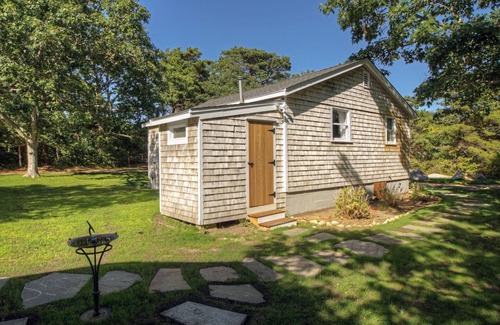 CHAPPY BUTTERFLY COTTAGE is a cozy non-posh two bedroom guesthouse with an additional sleeper sofa on the private Meadowsweet compound. Bicycles or a car required, all wheel drive or 4wd preferred. The cottage is ideally situated on the Cross Chappy Trail in the heart of this sought after “separate island.” ten minutes by car or mountain bike from the elegant village of edgartown on martha’s vineyard, the cottage offers guests the best of island options: multiple beaches in all directions, walking and mountain bike trails just steps from the front porch and in-town boutique amenities only ten minutes away! our site is off the beaten path and is not a pedestrian location; guests must have wheels!