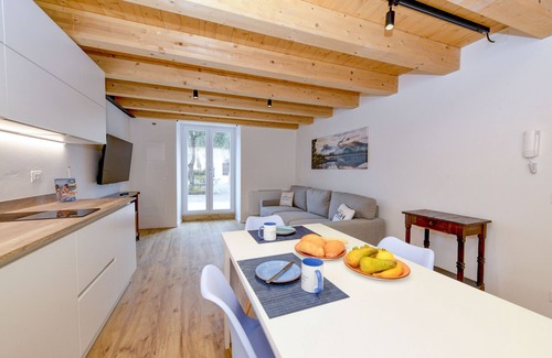 Directly overlooking Lake Garda, on the ground floor of a completely renovated building in the picturesque Piazza San Nicolò in Assenza di Brenzone, is La Corte, a modern and refined high-quality holiday flat. The location is simply unparalleled: the lake view is immediate and it is only a few steps to the landing stage from which boat trips depart, making this solution perfect also for those who wish to explore the area without using a car.The flat impresses from the first glance with its natural light, spacious rooms and contemporary design, conceived to offer an elegant and comfortable living experience. The living area is spacious, with attention to detail and equipped with a modern kitchen with induction hob, fridge with freezer, dishwasher, kettle and coffee machine. A comfortable sofa bed and a TV complete the living room, making it perfect for relaxing moments with family or friends.The bathroom, with its essential and sophisticated style, is equipped with shower, WC, bidet, hairdryer and all the necessary amenities. The two double rooms, elegant and cosy, are embellished with characteristic stone ceilings that lend authenticity to the ambience. Both rooms offer direct access to a lovely outdoor patio, furnished with a dining area to enjoy the lake atmosphere even outdoors.The flat is fully air-conditioned, has free Wi-Fi and offers the possibility of parking in a car park located a few hundred metres away, within easy walking distance.The building houses four independent flats, making it an ideal choice for groups of friends or several families wishing to spend a holiday together. Everyone can enjoy the same lakefront location, share moments of leisure and conviviality, and at the same time maintain their intimacy and privacy, thanks to the separate distribution of spaces.Assenza di Brenzone is a charming and peaceful location. The village lies between the lake and the mountains, offering enchanting views and a lively local life made up of small bars, ice-cream parlours and typical restaurants, all within easy walking distance along the lakeside promenade or through the characteristic streets of the village..