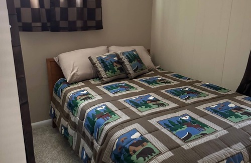 Unwind at this peaceful lakefront retreat in Holcombe. Perfect for families or groups, the home offers comfortable sleeping arrangements with a queen bed, full bed, and two twin beds spread across two cozy bedrooms.