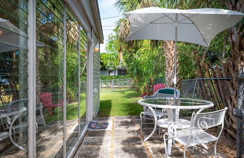 high thread count sheets, a full kitchen, outside seating, fenced private backyard await your family as you make your escape to paradise This darling cottage maintains its original footprint from the 1950's. Pristine, light reflective, restored terrazzo flooring and jalousie windows throughout make for wonderful ocean breezes for you to delight in.