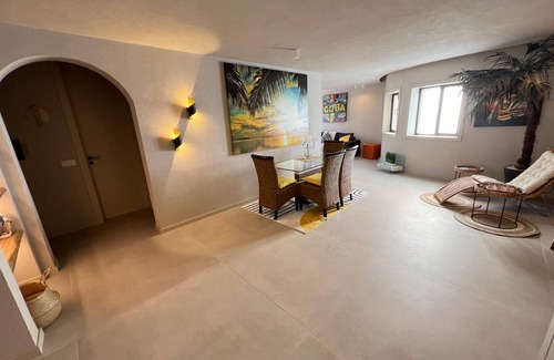Experience Mindelo like a local in this 2-bedroom apartment. This delightful property features 1 king bed, 2 full bed, a cozy living room with a sofa bed, and a bathroom with a hair dryer. Enjoy the soothing amenities such as AC, iron, washing machine, heating, and WiFi during your stay. Make your holiday one for the books with a stay at our place..