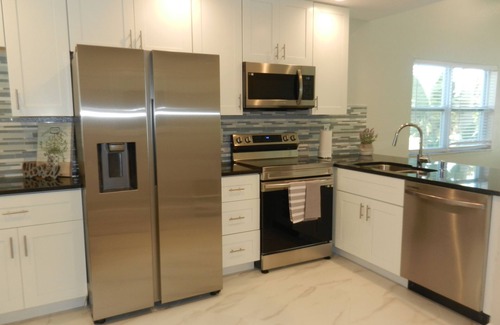step into a contemporary haven where all-new furniture and appliances complement an open, airy design The fully equipped kitchen boasts modern appliances, including a washer and dryer, ensuring all your needs are effortlessly met. You’ll find linens and towels provided, making your stay as convenient as it is comfortable.