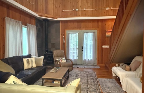 This cozy cottage walking distance from the Black River invites you to come swim, fish, or bring your kayak. Later you can hang out on the patio, soak in the claw foot tub, or build a warm fire in the wood stove. Enjoy nature just 20 minutes from White Lake. The downstairs bedroom has a full bed. In the upstairs loft there is a King size bed on one side which is open to the other side where there are two twin beds. There is chair under the stairs in the living room that pulls out to make a twin sized bed. This is a relatively secluded location in a private neighborhood intended for getting back to nature..
