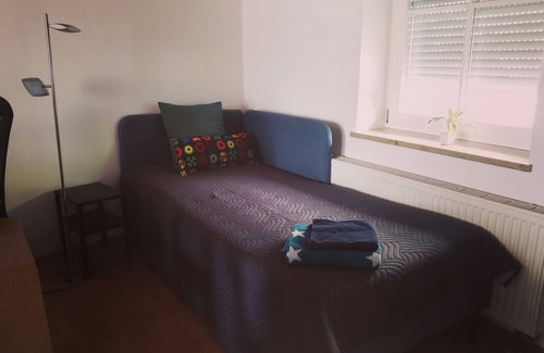 das apartment hat zwei schlafzimmer für insgesamt vier gäste Ein Zimmer hat ein Doppelbett, das zweite Zimmer hat zwei Einzelbetten. Ein Zustellbett ist möglich. Wir haben auch ein Babybett.