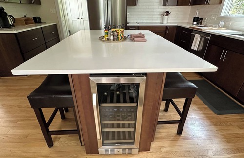 Experience Charlottesville like a local in this 4-bedroom house. With 2 king beds, 2 queen beds, and 1 twin bed this tranquil retreat offers a phenomenal escape. Enjoy the 4-1/2 bathrooms with showers and hair dryers, plus an additional living room space with a cozy twin bed. Two private decks out back over looking woods and river with built-in propane grill..