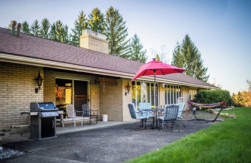 Step back in time in this stunning retro-styled home minutes from uptown Kane & the Allegheny National Forest! This spacious home has vintage vibes and modern comforts for a unique & relaxing stay. The house sleeps 10 in 4 BR & has 5 BA. An open layout, numerous gathering areas & 14 acres make this home perfect for creating memories. Great for large groups or corporate getaways. Enjoy the basement game & TV areas, cook in the well-equipped kitchen and access the bike trail from the back yard..