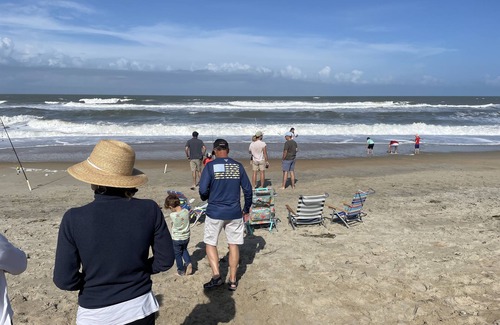 Enjoy the ocean and large salt water pool in vibrant Duck NC from this quaint 5-bedroom cottage. Only 400ft to beach with lifeguard. Surf fishing. Access to Sound boardwalk and kayak launch. Short walk to Duck restaurants and shops. Sleeps 14 With 3 queen beds, 1 full bed, 5 twin beds, and 1 bunk bed, there's plenty of space for families and friends. Two decks and large screened porch. Kitchen, dining and TV great room. Screened porch w dining table for 12. Poolside shaded entertainment room w large seating area & TV, sand box, 3 hammocks, 2 swings. Game room w ping pong and foosball. Laundry room and office space. Bikes, beach chairs, beach umbrellas, beach toys provided. Propane and charcoal grill and new smash burger grill. Extra refrigerator for drinks. Kegerator with one beer keg provided..
