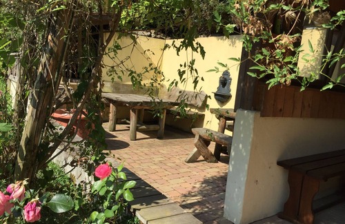 the adjoining garden with plenty of seating and a brick barbecue area rounds off the picture in style Have a rest in the green under the apple trees or sunbathe on the terrace (the garden is exclusively available to our guests of the house Romance for common use).