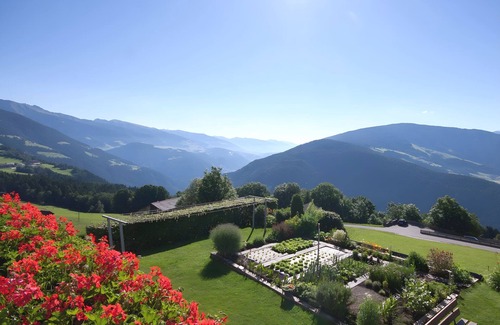 The cosy and nicely furnished apartment “Haselstaude - Abendrot” with fantastic views of the valley basin is situated outside of Mühlbach (Rio di Pusteria), near Brixen (Bressanone), and is a great starting point for a vacation in the fascinating South Tyrol Alps. The 45 m² apartment consists of a living room with a sofa bed for 2 people, a well-equipped kitchen with a dishwasher, 1 bedroom with double bed and sofa bed for 1 person, as well as one bathroom and can therefore accommodate 5 people. Additional amenities include free Wi-Fi, a safe and cable/satellite TV, while a children’s bed can be added upon request. You can start the day with coffee on the spacious balcony and enjoy the amazing panoramic views. The shared outdoor area boasts a lush garden with beach chairs for you to relax in the sunshine, as well as a covered terrace. You will find a supermarket, a bakery, restaurants and a pharmacy after a 10-minute drive (7.5 km) to the centre of Mühlbach. From there, you can get to the centre of Bressanone (Brixen) in 25 minutes by train (one change), but you can also reach it after a 30-minute drive (28 km). Bressanone (Brixen) is famous for its cathedral, lovely architecture and many culinary specialities. The area offers numerous great routes for hiking and cycling, as well as lakes, and within 10-20 minutes by car (6-8 km), you will reach the nearest skiing areas. A 50-minute drive (58 km) away, South Tyrol’s capital city of Bolzano (Bozen) awaits you.
