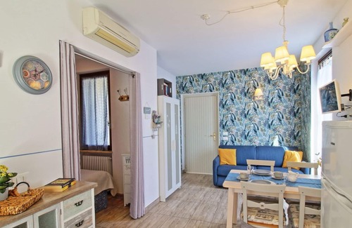 Elegant and brand new apartment of 40sq, - ideal occupancy for 2 adults or 2 adults and 1 child, or 3 adults -, on the first floor completely renovated in May 2018, furnished with taste and attention to detail, very bright, equipped with a large balcony facing the south facing with countryside views, furnished with table and chairs, 5 meter automatic awning. Double bedroom with window, small but very romantic, with double bed equipped with two brand new single comfort memory mattresses divided from the living area with curtain (see photo). Blankets and 4 pillows supplied.