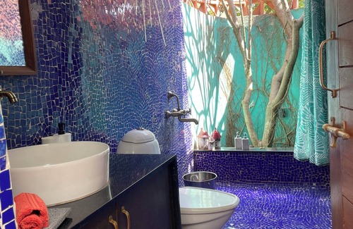 Escape to this charming farmhouse in picturesque Karjat. This tranquil retreat offers a cozy bedroom with 1 full bed and 1 twin bed, along with 2 refreshing bathrooms featuring showers. Relax in the living room with an additional twin bed for extra comfort. Immerse yourself in the phenomenal surroundings and enjoy a peaceful getaway. We an artist collaborative space located on the outskirts of Mumbai city, celebrating Art Architecture and Nature through sustainable practises, workshops and overnight programs. We'll be available to answer any questions while you stay at our place..