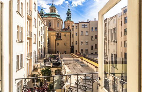 out on the balcony you can enjoy the stunning view of stNicholas' Church.