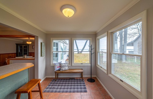 No matter when you visit, our four season lakefront cottage has something to offer everyone. Come enjoy and start making Pure Michigan memories in this charming cottage on beautiful Black Lake. A well equipped spacious kitchen will make cooking meals a breeze. A dining room that is perfect for both family or candlelight dinners for two. Our cozy living room with lake views, is the perfect place to binge watch your favorite series, watch a game or cuddle up with a good book. Step out to the sunroom for the best sunrises over Black Lake, a wonderful place to sip a glass of wine and soak it all in after a great day. The table in the sunroom is ideal for puzzles or family game night. Off of the sunroom, you'll find a deck with an eating area and a grill. A fire pit with adirondack chairs lakeside is lake life at its finest. Also on the first floor you will find a full laundry room, luxurious master bedroom with king bed and a large full bath with double vanity. Upstairs you'll find a bunk room with two sets of bunk beds, a bedroom with a queen bed, a bedroom with a full size bed, a half bath and a hangout space perfect for the kiddos (complete with futon, TV, DVD player and classic Nintendo games). Located minutes away from ATV/snowmobile trails and golf. Bringing your boat, message owner. Kayaks, lilypad, hammock, cornhole, badminton and paddleboards available for your use. We have recently added a lined pickleball court with a net, paddles and balls. Lake frontage is fairly shallow, clear and sandy bottom: perfect for kiddos. Look no further, this is it!.